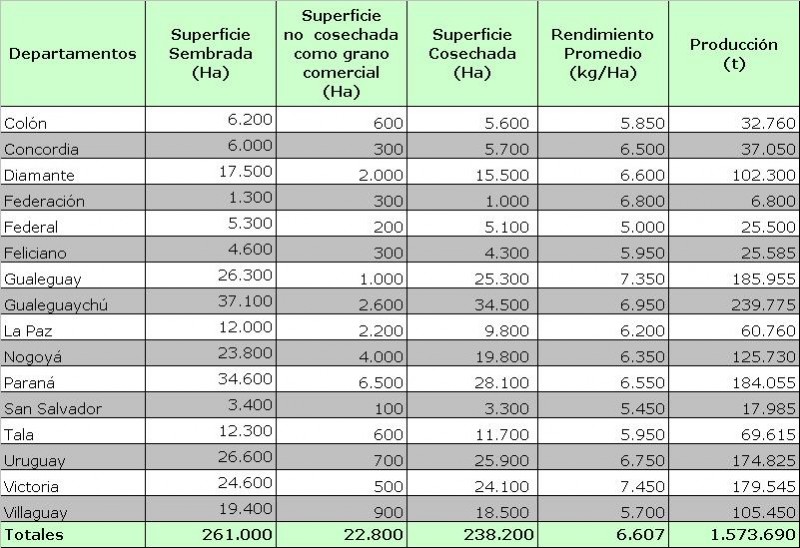 EVOLUCIÓN DE LA PRODUCCIÓN DE MAÍZ EN ENTRE RÍOS