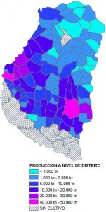 La producción a nivel de distrito se muestra en el Mapa 6.