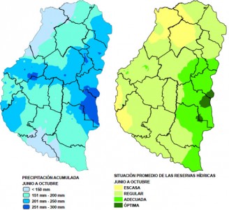 En base a los datos del SMN (Servicio Meteorológico Nacional) se estima que en Entre Ríos la precipitación acumulada se aproxima en dichos meses a 340 mm; el valor medio registrado el año pasado fue de 305 (una reducción de 35 mm lo cual equivale a -10%).