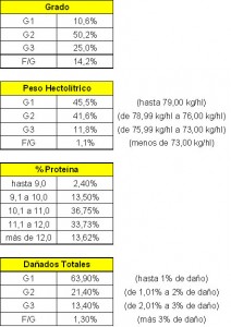 En la Tabla 3 se muestran los resultados estadísticos de calidad de trigo pan efectuado por CACER (Cámara Arbitral de Cereales de Entre Ríos) sobre un total de muestras analizadas que alcanza el 65% – 70% del total provincial.