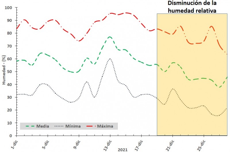 El mes de diciembre también se ha caracterizado por elevadas temperaturas y baja humedad relativa.