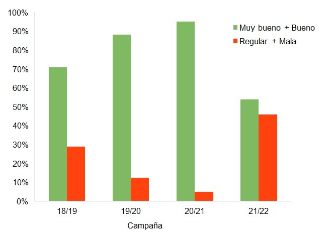 Es importante destacar que las temperaturas extremas generaron una caída del 31 % en la condición buena a muy buena en el transcurso de la última semana.