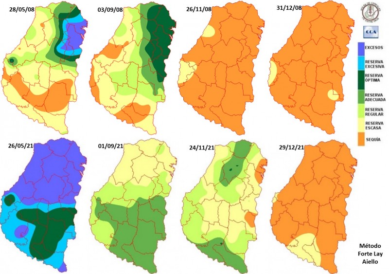 Una escenario similar se registró en el ciclo 2008/09. Existe una gran similitud en las escasas precipitaciones del mes de diciembre. No obstante, hay diferencias en el estado de las reservas en: la salida del otoño, el inicio de la primavera y el cierre del mes de noviembre, que en el ciclo 2008/09 resultó más deficitario Figura 7.