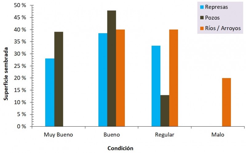 Por otra parte, las recientes precipitaciones ocurridas en los primeros días del año (si bien fueron en general escasas), permitieron dar un respiro en el sistema de riego por pozos. En el resto del área, las lluvias no lograron mitigar los inconvenientes en el riego.