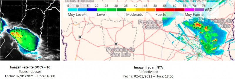 Un nuevo frente de tormenta generó, nuevamente la caída de granizo en el departamento Diamante. El evento ocurrió el domingo 2 de enero alrededor de las 18:00 horas (Figura 4).