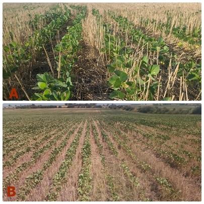 La soja de segunda está en pleno estado vegetativo, desde V3 a V6 (3 – 6 hojas desarrolladas).