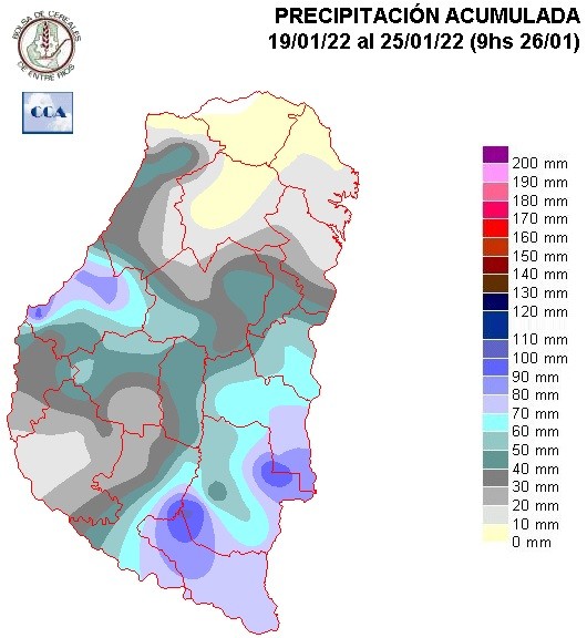El rendimiento promedio provincial es inferior al obtenido el año pasado 5.138 kg/ha. Los rindes obtenidos a nivel departamental se sitúan en un rango que va de 2.500 kg/ha hasta 4.800 kg/ha.