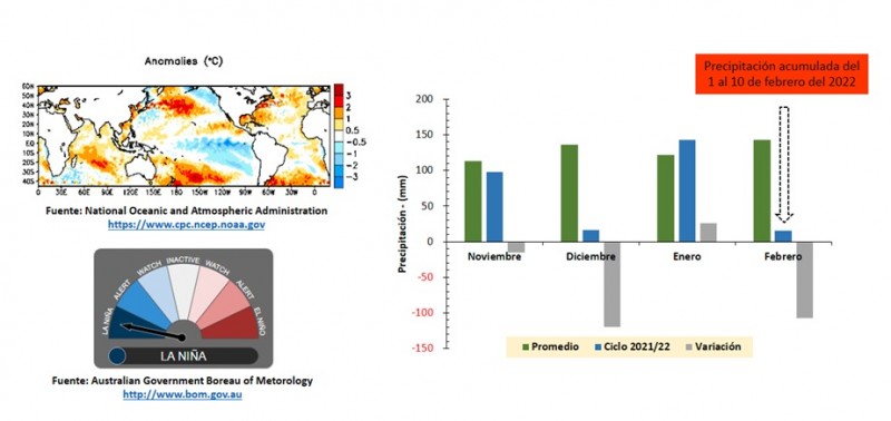 Si bien se han dado precipitaciones durante el mes de febrero, el cultivo no a mostrado cambios positivos en la condición.
