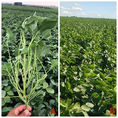 El estado fenológico del cultivo presenta un amplio rango, los sembrados a mediados de enero se encuentran desde V5 (5 hojas expandidas) y los implantados en la segunda quincena de diciembre en plena floración.