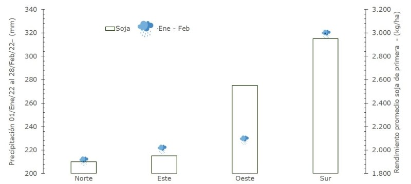 No obstante, se evidencias diferencias muy marcadas por zonas, asociadas fundamentalmente a la precipitación acumulada entre enero y febrero (período crítico del cultivo) y el potencial productivo de cada zona (Figura 1).