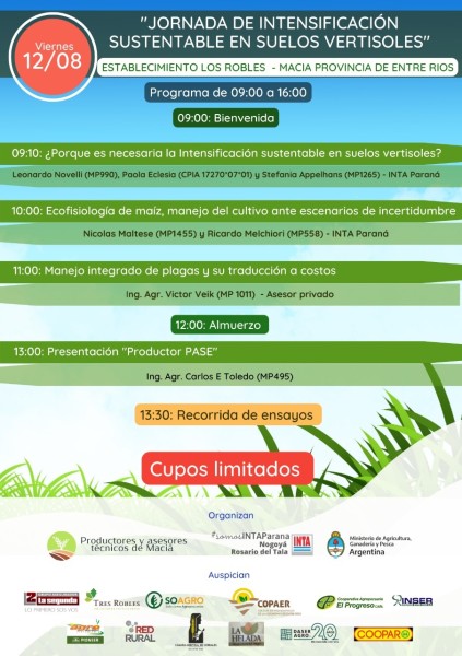 El INTA Paraná en conjunto con productores y asesores técnicos de la localidad de Maciá realizarán una jornada a campo denominada intensificación sustentable en suelos vertisoles