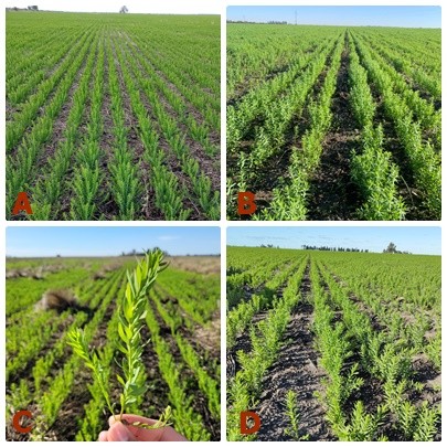 El estado general del cultivo es bueno a muy bueno, con plantas bien ramificadas que han logrado valores satisfactorios de cobertura foliar en los lotes.