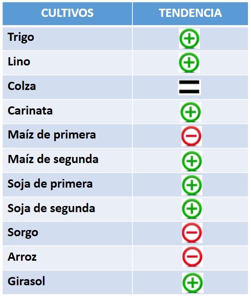 A continuación, se muestra la tendencia en el área destinada a los principales cultivos.