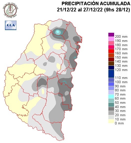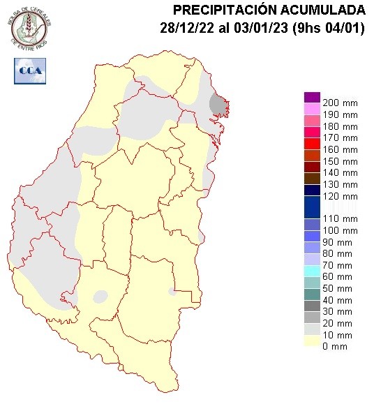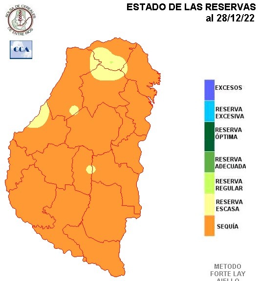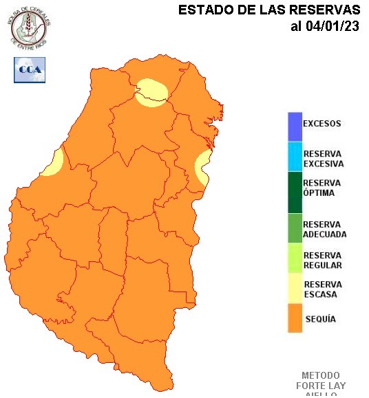 No podemos sorprendernos de que el balance hídrico a nivel provincial se resuma en un área uniforme dominada por la sequía. Esto era previsible y ya durante el mes de diciembre hubo vastas zonas de la provincia que presentaron esta condición hídrica, con esporádicas mejoras, pero nunca hacia un nivel sobrado. Con las muy escasas lluvias de la transición interanual y esta semana libre de precipitaciones y con temperaturas por encima de los valores normales, el ajuste hacia la nulidad de reservas era imposible de sortear.