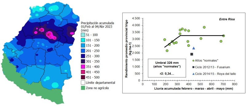 Finalmente, recordar que, este valor de rendimiento se puede superar a igual lluvia acumulada, por ejemplo, con una adecuado diagnóstico y manejo de la fertilización, buen manejo de enfermedades y utilizando los mejores cultivares. Además, el umbral podría ser mayor cuando las condiciones antes señaladas se integran.