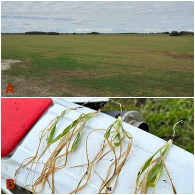 El estado fenológico se ubica desde emergencia hasta macollaje, con buenos nacimientos en general, a excepción de algunas zonas donde las heladas afectaron y podrían requerir una resiembra, Figura 2.