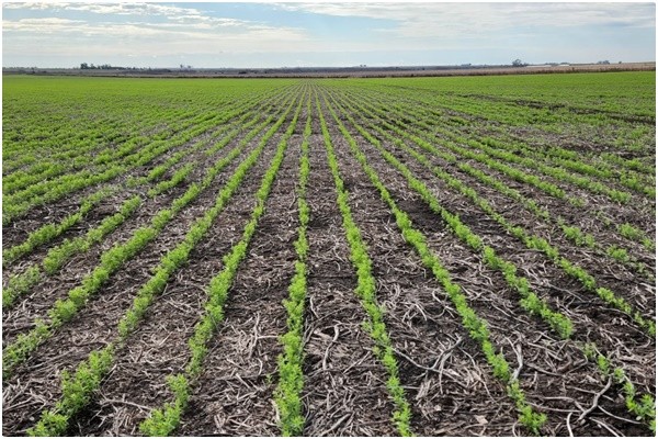 La implantación del cultivo es buena a muy buena, y el estado fenológico varía desde la emergencia hasta ocho pares de hojas desarrolladas, con una altura promedio de 15 cm. Figura 2.