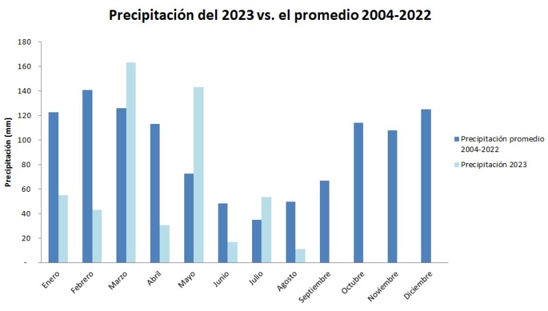 A la fecha la tendencia positiva en el área está condicionada por la falta de humedad en el perfil del suelo. Las precipitaciones en la provincia fueron escasas durante el mes de agosto, que cerró con un déficit del 77 % si se lo compara con el promedio 2004-2022 (Figura 2), por lo tanto las precipitaciones del mes de septiembre, serían claves para definir el área a sembrar.