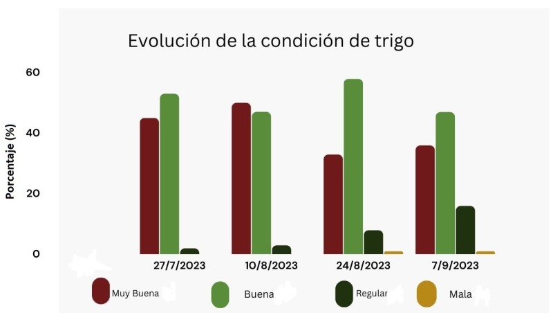 La condición general del trigo en Entre Ríos se distribuye de la siguiente manera: