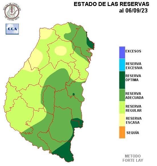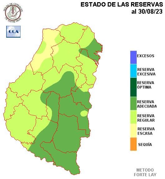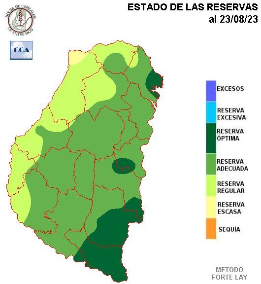 Este nivel de reservas aun es suficiente para mantener el estado de los cultivos de invierno en un nivel relativamente bueno, pero el faltante de lluvias a nivel de perfil comienza a sentirse. Posiblemente los suelos que en estas fechas están yendo a las siembras tempranas de maíz, estén quedado algo más afectados. Las lluvias recientes han generado alguna recuperación superficial, pero hace falta una recarga un poco más importante, aun cuando el nivel de lluvia no sea el óptimo.