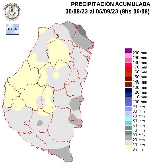 Es importante destacar que, las precipitaciones al comienzo del mes han sido escasas o nulas en algunos sectores, lo cual reviste gran importancia debido a que el cereal se encuentra en un período crítico para la definición de su rendimiento.