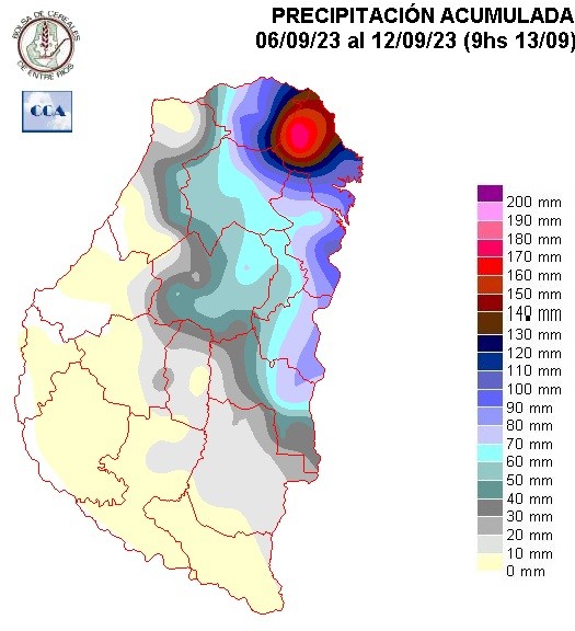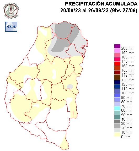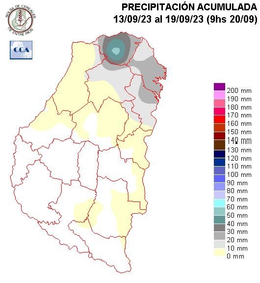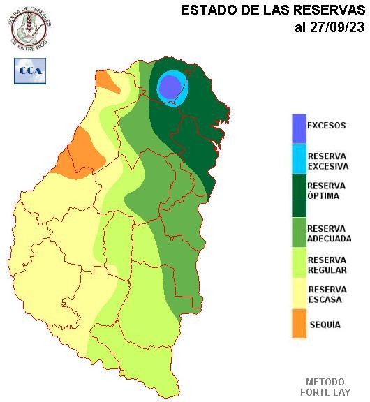 Casi todas las zonas agrícolas principales de ER ya han ingresado en un nivel de demanda que exige unos sesenta milímetros mínimo, en las próximas dos semanas para que las correcciones de humedad de los suelos sean apreciables. Este nivel de lluvia no está fuera del alcance de lo que puede dar el mes de octubre, sin embargo los pronósticos tienden a sostener un nivel de lluvias muy modesto.