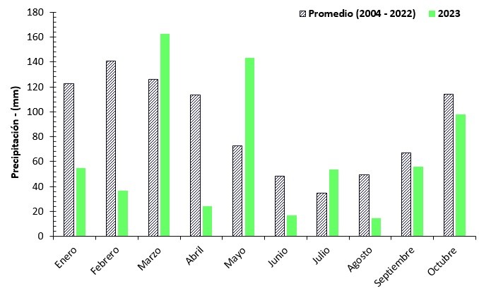 En los últimos 10 meses, solamente en marzo, mayo y julio hubo precipitaciones superiores al promedio histórico mensual (Figura 1).
