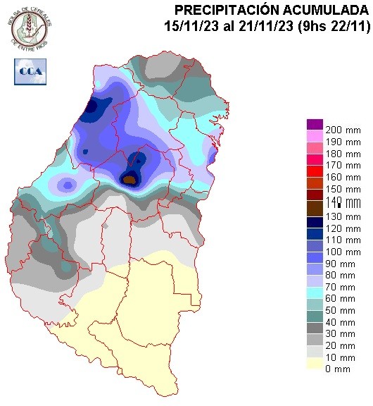 Es importante destacar que, en las últimas semanas los mayores registros pluviométricos se han localizado hacia el centro Norte provincial, lo cual generó en este sector un mayor retraso en las labores y mermas significativas en los rendimientos.