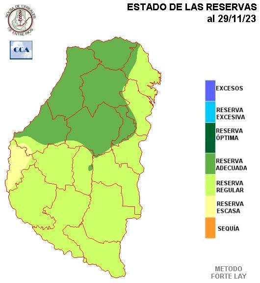 Como describimos, las lluvias de las primeras dos semanas han dejado solo algunas áreas menores con reservas algo más ajustadas. No es otra zona que la que venimos monitoreando en las últimas semanas y que se concentra fundamentalmente en Diamante. Observemos que este sector sin estar en una situación crítica para el desarrollo de los cultivos es prácticamente el único en el que se impone alguna necesidad pluvial. Esta necesidad debería ser satisfecha durante los próximos días. Al menos hasta el lunes próximo o hasta que llegue la rotación de los vientos al sector sudoeste, las condiciones atmosféricas seguirán siendo favorables para la regeneración de eventos pluviales. Luego viene un periodo más tranquilo, no sin lluvias, pero con un cese en la sobreoferta de agua. El mes ya está marcado hacia arriba.