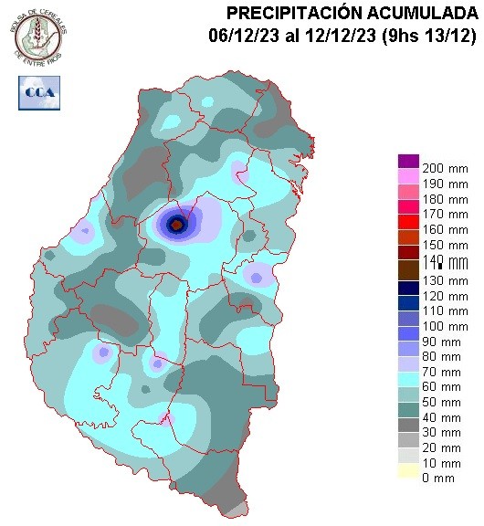 En estas dos primeras semanas de diciembre las lluvias marcan la continuidad del patrón húmedo, basado fundamentalmente en la presencia del fenómeno de El Niño. Si bien hay zonas donde los acumulados hasta ahora se mantienen por debajo de los cien milímetros, en gran parte de la provincia los registros pluviales ya quedan muy cerca de los valores normales y vastas zonas del centro norte de la provincia ya han quebrado este techo sobradamente.