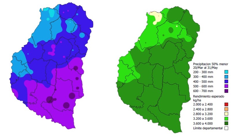 En la provincia de Entre Ríos, la precipitación promedio acumulada entre los meses de febrero a mayo se ubica en 450 mm.