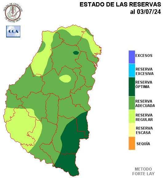 Las proyecciones de la campaña a finales de abril, se basaron en un escenario dominado por los excesos hídricos y las complicaciones con los excesos de humedad a cosecha. Por entonces, se percibía que la transición entre las lluvias abundantes y la normalización de las precipitaciones serían más progresivas, adaptándose al retiro del fenómeno de El Niño. Sin embargo, transcurridos los primeros diez días de mayo, el cambio de circulación fue muy abrupto, con entradas de aire polar tempranas que forzaron un fuerte retroceso en la oferta de agua. Este cambio en el patrón pluvial de sobreabundante a escaso, no se ha resuelto hasta estos días. La señal sobre la disponibilidad de reservas a esta altura de julio ya es evidente a niveles superficiales, con un mejor panorama en los niveles más profundos.