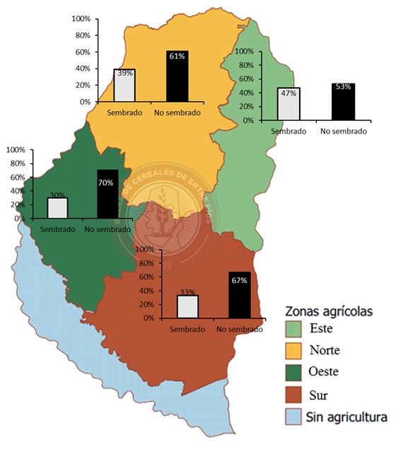 Actualmente, la siembra alcanzó aproximadamente el 35 % del área prevista.