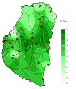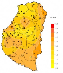 Exceptuando la franja que recién describimos al comentar el mapa de lluvias, la semana ha sido mayormente seca para gran parte de la provincia. Es decir hemos transitado hasta la mañana de ayer, más de diez días sin precipitaciones o con una oferta muy pobre en gran parte de la provincia. El balance hídrico lo traduce un retroceso de las reservas, observándose un predominio de la categoría regular y apareciendo la advertencia del inicio de sequía en el norte. Como siempre decimos, este balance es el escenario de mínima, quizá la situación no sea tan ajustada en el norte, pero cuantifica un nivel de demanda diferenciado respecto de zonas ubicadas más hacia el sur. En resumen, sería interesante que los máximos pluviales se concreten en este sector.