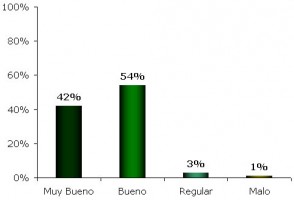 El resultado refleja que el 96% del área posee una condición desde buena a muy buena, existiendo un 3% en un estado regular y aproximadamente el 1% cuenta con una performance mala, ver Gráfico 1.
