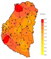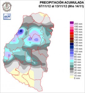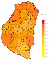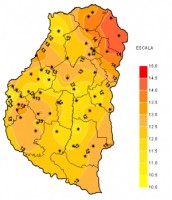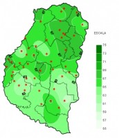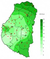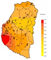 Las lluvias que se representan en el mapa definen algunas zonas mejor provistas que otras, mayormente ubicadas en los departamentos del oeste.
