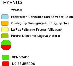 A pesar de las precipitaciones de la semana pasada, el balance hídrico refleja un retroceso en la condición de humedad prácticamente en toda la provincia. Obsérvese que fueron necesarias lluvias del orden de 40 milímetros para sostener en un nivel adecuado de reservas en buena parte del departamento Paraná y las vecindades de Diamante. En el resto de la provincia, las pérdidas hídricas fueron mayores que las ganancias al contabilizar los 28 días. Esta situación se alcanza incluso considerando las sobradas reservas con que se promedió el mes de octubre, las cuales por momento complicaron el avance de las siembras.