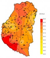 Si bien el avance de un frente frío durante el último día de la semana que estamos considerando provocará un fuerte descenso de las temperaturas, el efecto del mismo se notará más claramente en el análisis de la próxima semana. Mientras tanto, el balance térmico de los últimos siete días no arroja cambios significativos en las temperaturas registradas respecto del periodo anterior. Las mínimas se mantuvieron entre los 5 y 7ºC y las máximas apenas superaron los 28ºC. En ambos casos los registros pueden considerarse levemente superiores a los históricos para este periodo del año.