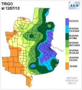 Más allá de los sectores mediterráneos que quedaron marginados de estas favorables precipitaciones, el efecto de estas jornadas húmedas sobre la disponibilidad hídrica del suelo para el trigo es muy benéfico, claro está con excesos temporarios que aparecen en el este y en la zona de influencia de Pigué en el sudoeste bonaerense.