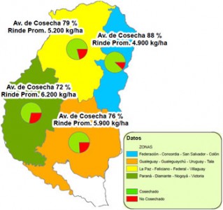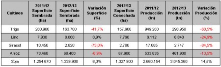 El siguiente cuadro compara los datos estadísticos finales de trigo, lino, girasol, arroz y soja de las dos últimas campañas agrícolas en Entre Ríos.