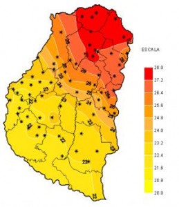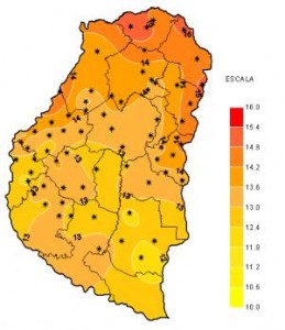 En los últimos siete días las marcas térmicas han tenido un comportamiento casi primaveral, con temperaturas máximas que fueron más elevadas que las registradas la semana pasada e incluso muy altas respecto de la época del año, con valores que en promedio, se mantuvieron entre 25 ºC y 27 ºC. La temperatura más alta fue de 28ºC y se midió en las localidades de Atencio y Chajarí, ambas en el extremo norte de la provincia. Las mínimas por su parte tuvieron un comportamiento muy dispar, es así que los registros variaron entre 1,1 ºC bajo cero y 5,3 ºC por encima del punto de congelación, dependiendo de la ubicación del lugar de medición respecto del ingreso a la provincia del aire cálido y húmedo que predominó durante la mayoría de los siete días.