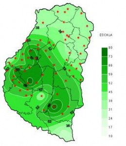 En el Mapa 1 se puede apreciar el grado de avance y los rendimientos promedios logrados en cada zona en que se ha dividido a la provincia.