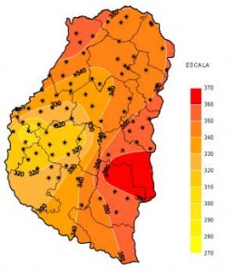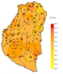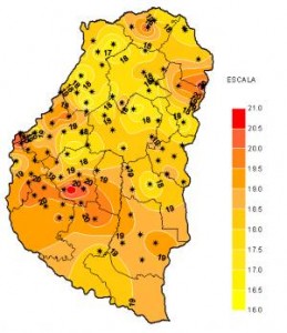 Prácticamente no se registraron precipitaciones durante la ultima semana y solo algún chaparrón aislado quebró la ausencia total de lluvias que permitieran un alivio al intenso calor predominante. La Humedad Relativa se mantuvo muy baja y prácticamente no se registraron Horas de Mojado Foliar. En cuanto a la Tasa de Radiación Solar media fue muy elevada, con valores máximos cenitales superiores a los 1300 W/m2 y un alto índice de Grados/Día acumulados.