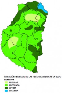 Hacia mediados de mayo se incrementó la superficie dentro del territorio con reservas regulares alcanzando el 34% y posteriormente por efecto de las precipitaciones retrocedió hasta mantenerse en valores cercanos al 3%.