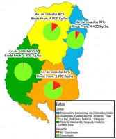 El área sembrada se ubicó en las 70.500 ha, de las cuales tan solo se ha cosechado menos del 5% con rendimientos promedios que oscilan entre 4.500 kg/ha y 9.000 kg/ha.