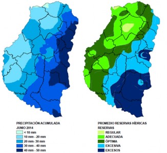 Este hecho se debe a que el mes de mayo dejó en la mayor parte del territorio una muy buena disponibilidad hídrica en el suelo y la escasa evapotranspiración en esta altura del año, tiene el efecto de que pequeños eventos pluviométricos ocasionen una saturación del perfil.