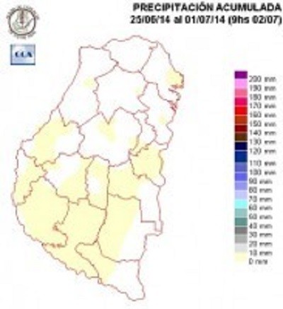 Con acumulados de lluvia del orden de los 20 milímetros, la zona que presenta reservas óptimas vuelve a los excesos. Este volumen de agua no se descarta que se observe el sábado sobre los departamentos linderos del rio Uruguay, quizá tomando Tala y Gualeguay. Federación y Concordia podrían superar estas marcas, al tiempo que la franja oeste no superaría esta barrera que proponemos como guía para cuantificar la posible oferta de agua. Este pronóstico puede mostrar variantes en la oferta de agua según sea la trayectoria del sistema de mal tiempo. Visto desde hoy, hay que esperar un patrón de lluvias similar al descripto.