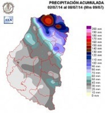 PRECIPITACION ACUMULADA DEL 2 AL 8 DE JULIO DE 2014