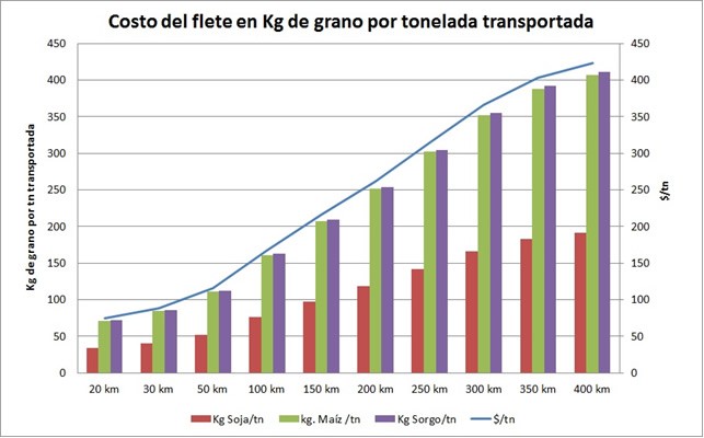 El aumento del flete ha impactado muy fuertemente en la rentabilidad de los cultivos, lo cual se agrava con la caída del precio de la mayoría de los commodities, lo cual provocó que sectores alejados del puerto se vuelvan inviables para la producción.