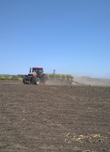 Como puede apreciarse en la fotografía, la siembra de soja progresa muy lentamente debido a la falta de humedad en la cama de siembra, no superando el 5% de avance promedio a nivel provincial.